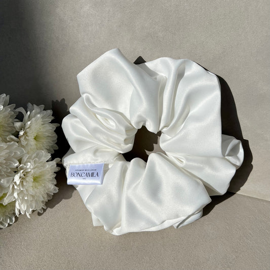 Bridal Oversized Hair Scrunchie White Duchess Satin Handmade